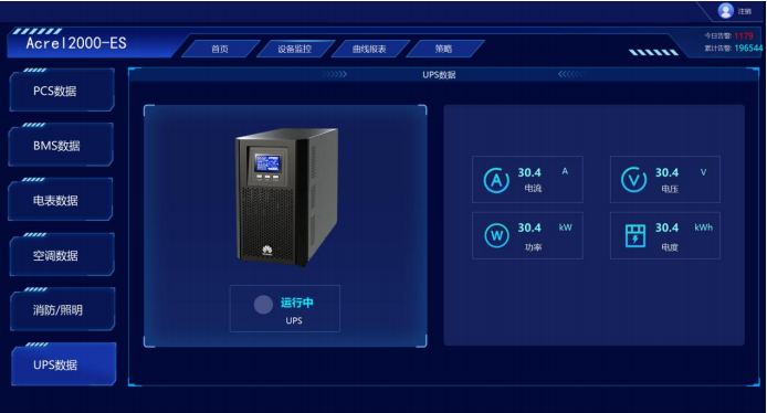 采集并顯示 PCS 系統的相關參數,包括:直流側的電壓/電流/功率等、PCS 的三相有功功率、無功功率、三相電壓、三相電流、功率因素、頻率、運行狀態、報警及故障信息等常用信息,及日輸入電量、日輸出電量、累計輸入電量、累計輸出電量等;