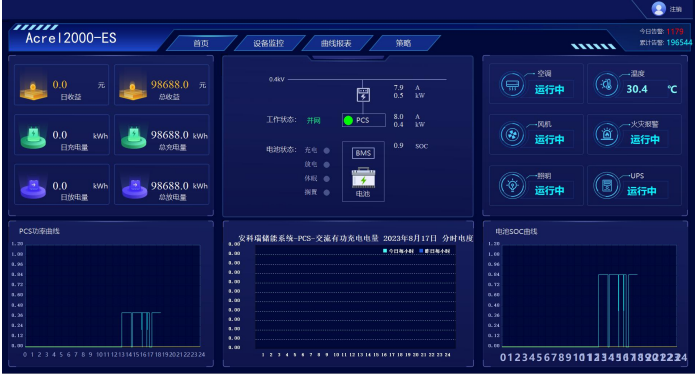 安科瑞Acrel-2000ES儲能能量管理系統具有完善的儲能監控與管理功能,涵蓋了儲能系統設備(PCS、BMS、電表、消防、空調等)的詳細信息,實現了數據采集、數據處理、數據存儲、數據查詢與分析、可視化監控、報警管理、統計報表等功能。在高級應用上支持能量調度,具備計劃曲線、削峰填谷、需量控制、備用電源等控制功能。系統對電池組性能進行實時監測及歷史數據分析、根據分析結果采用智能化的分配策略對電池組進行充放電控制,優化了電池性能,提高電池壽命。