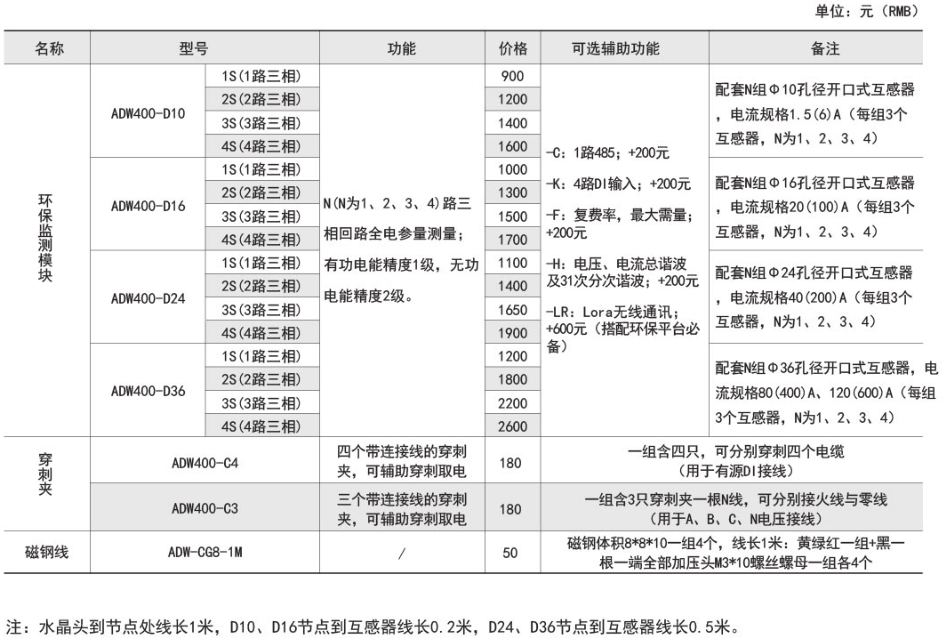 ADW400環(huán)保監(jiān)測模塊主要用于計量低壓網(wǎng)絡的三相有功電能,同時可選擇四個回路的電流輸入,具有RS485通訊和470MHz無線通訊功能,方便用戶進行用電監(jiān)測、集抄和管理。可靈活安裝于配電箱內(nèi),實現(xiàn)對不同區(qū)域和不同負荷的分項電能計量,統(tǒng)計和分析。