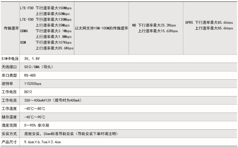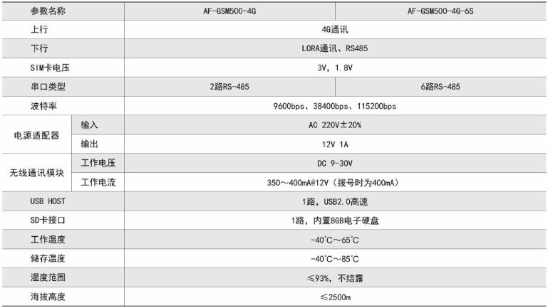 AF-GSM500 DTU技術(shù)指標(biāo)