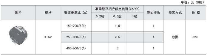 | AMZK52 | 150-200/5(1)A | 1.5 | ? | ? | Ф52 | 膠圈 |
