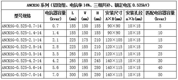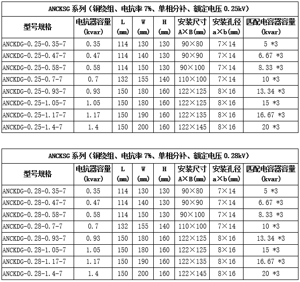 技術要求:適用電容器5kVAR;7%電抗率;銅芯