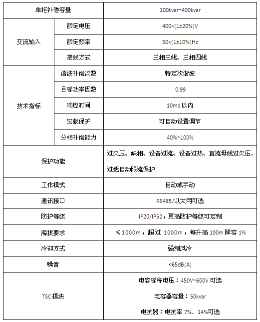 技術(shù)參數(shù):無功補(bǔ)償分補(bǔ)容量100kvar,共補(bǔ)容量50kvar