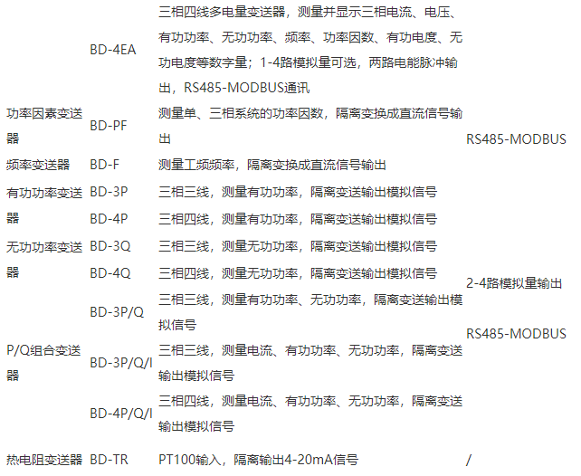 安科瑞產(chǎn)品BD系列電力變送器是一種將電網(wǎng)中的電流、電壓、頻率、功率、功率因數(shù)等電參量,經(jīng)隔離變送成線性的直流模擬信號(hào)或數(shù)字信號(hào)的裝置。
