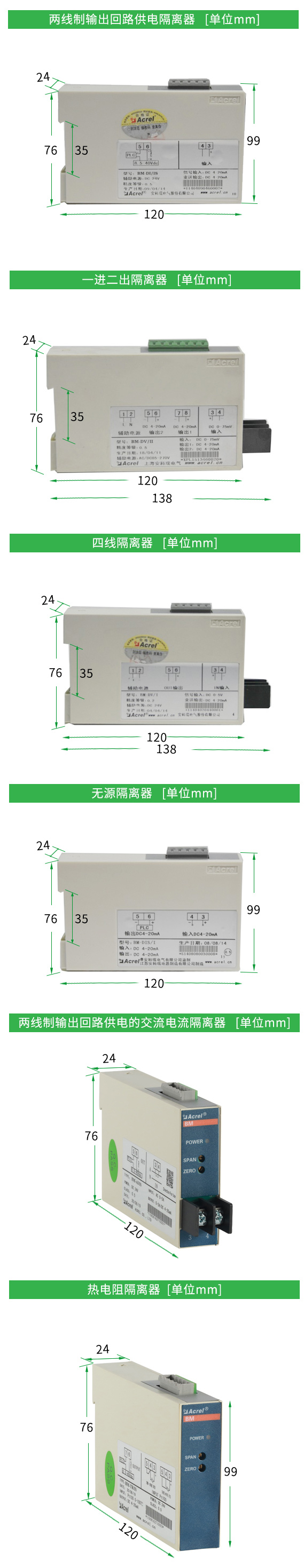 BM系列模擬信號(hào)隔離器可以對(duì)電流、電壓等電量參數(shù)或溫度、電阻等非電量參數(shù)進(jìn)行高速精確測(cè)量,經(jīng)隔離轉(zhuǎn)換成標(biāo)準(zhǔn)的模擬信號(hào)輸出。既可直接與指針表、數(shù)顯表相接,也可以與自控儀表(如PLC)、各種A/D轉(zhuǎn)換器以及計(jì)算機(jī)系統(tǒng)配接。