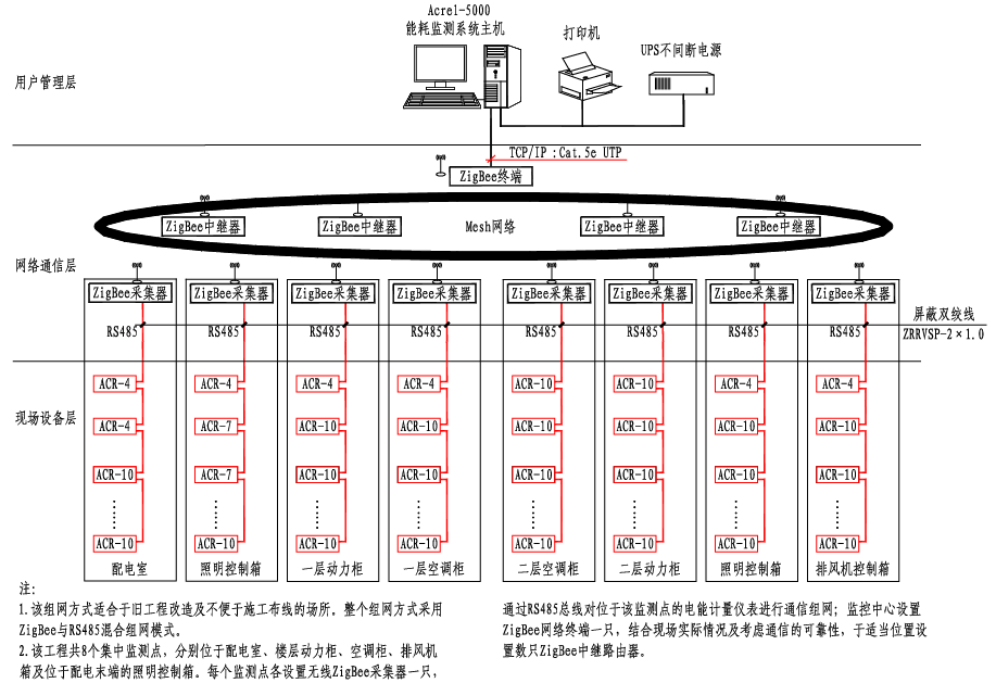 ZigBee無線網(wǎng)絡(luò)能耗監(jiān)測系統(tǒng)組網(wǎng)示意圖